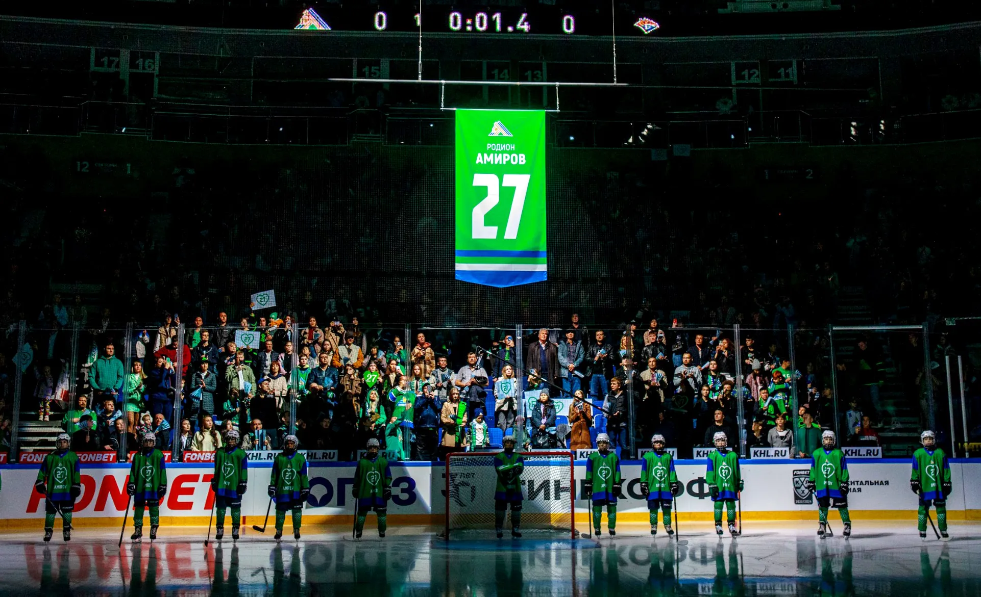 Игра в Уфе между местным «Салаватом Юлаевым» и «Металлургом» из Магнитогорска началась с грустной церемонии поднятия свитера с №27 (и выводом этого номера из обращения), принадлежавшего скончавшемуся от рака молодому и талантливому воспитаннику уфимской школы хоккея Родиону Амирову.